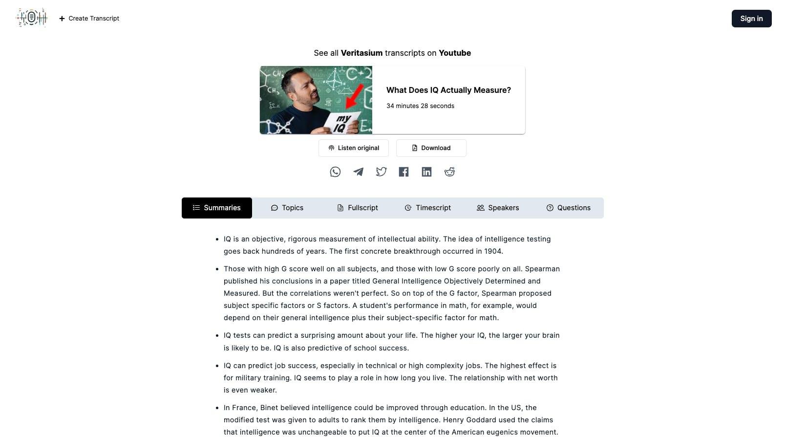Transcript.LOL caters to a wide range of media types, including videos, podcasts, interviews, webinars, and more. With the ability to download content from over 1500 platforms, our AI-powered transcription service delivers remarkable accuracy, although the final output can be affected by the quality of the audio input. It skillfully identifies numerous accents and dialects, boasting an accuracy rate that approaches the best human transcribers at nearly 99%. The time required for transcription is proportional to the media length; for example, a 30-minute audio file generally takes around one minute for download and transcription. However, actual processing times can vary depending on the media's source and server traffic. Our transcripts are available in various formats, including time-stamped sentences, speaker identification, full transcripts, summaries, and topics, providing flexibility for different user needs. Furthermore, all transcripts can be conveniently downloaded in PDF format, allowing users to easily access and share their documents. This extensive service is tailored to accommodate the diverse requirements of both professional and personal users, ensuring everyone finds the support they need. Ultimately, Transcript.LOL stands out by delivering high-quality transcription services that adapt to the ever-evolving landscape of media consumption.
