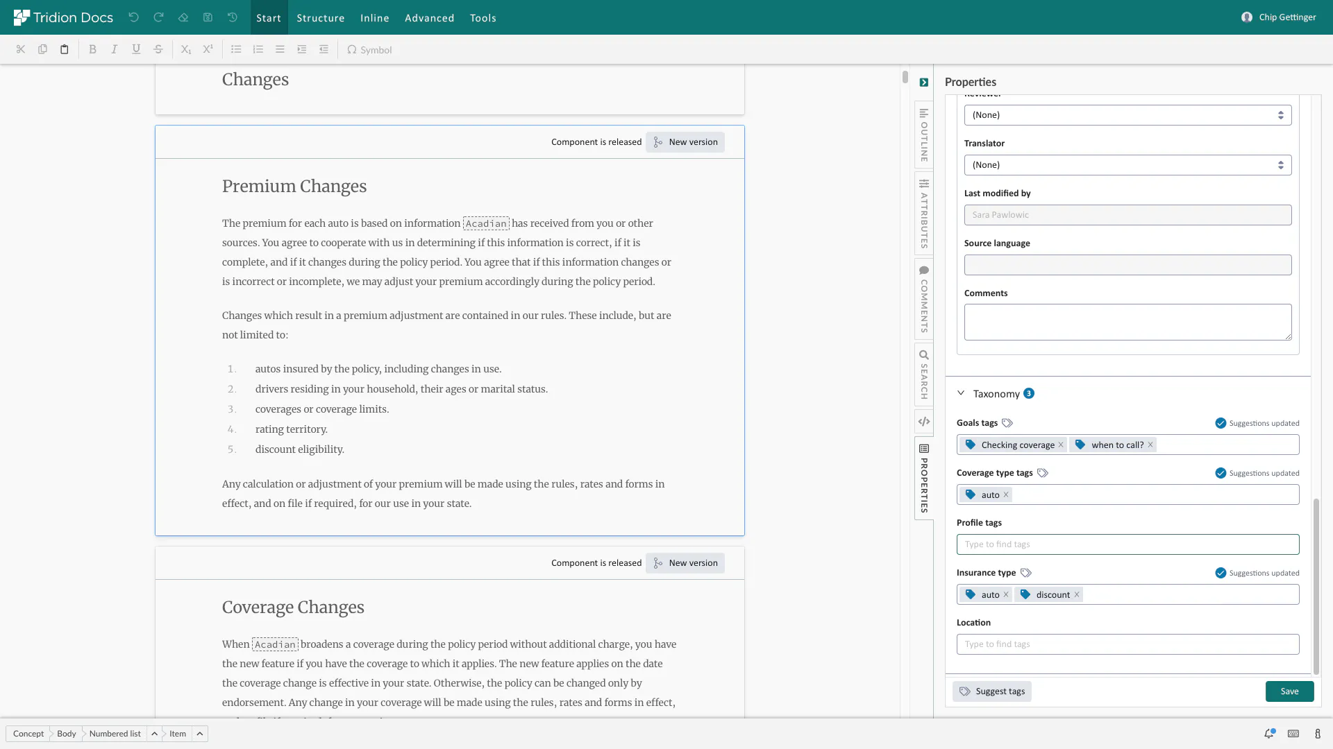 Our DITA-based Component Content Management System (CCMS), Tridion Docs, enhances and automates intricate content processes on a large scale, equipping users to author, review, localize, manage, and confidently deliver structured content. With Tridion Docs, the creation of essential technical documentation, policies, procedures, and other crucial regulatory materials is streamlined and made efficient through the integration of AI technology.