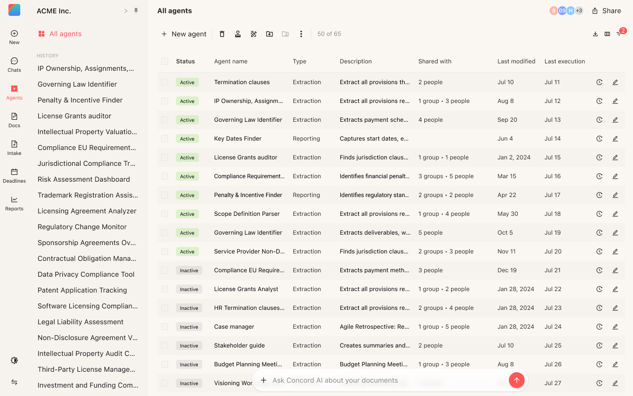 Concord Horizon is a modern contract management solution designed for teams that want faster creation, review, and analysis supported by built in AI capabilities. The platform introduces a cleaner, more customizable interface with light or dark mode, full screen layouts, collapsible navigation, custom and pinnable columns, and layered filtering to speed up daily work.