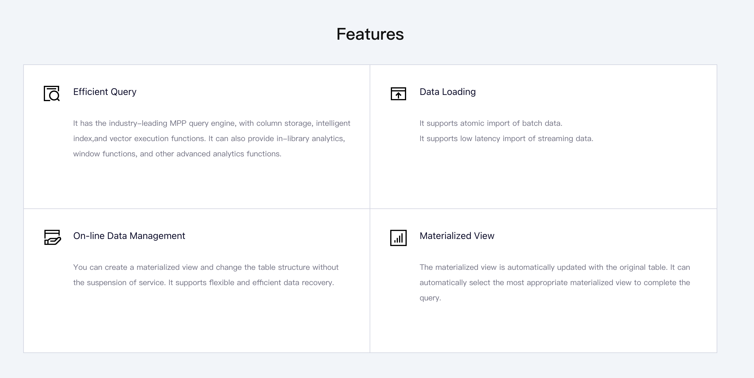 Palo enables organizations to quickly set up a PB-level MPP architecture for their data warehouses in mere minutes while effortlessly integrating large volumes of data from various sources, including RDS, BOS, and BMR. This functionality empowers Palo to perform extensive multi-dimensional analyses on substantial datasets with ease. Moreover, Palo is crafted to integrate smoothly with top business intelligence tools, allowing data analysts to visualize and quickly extract insights from their data, which significantly enhances the decision-making process. Featuring an industry-leading MPP query engine, it includes advanced capabilities such as column storage, intelligent indexing, and vector execution. The platform also provides in-library analytics, window functions, and a range of sophisticated analytical instruments, enabling users to modify table structures and create materialized views without any downtime. Furthermore, its strong support for flexible and efficient data recovery further distinguishes Palo as a formidable solution for businesses seeking to maximize their data utilization. This extensive array of features not only simplifies the optimization of data strategies but also fosters an environment conducive to innovation and growth. Ultimately, Palo positions companies to gain a competitive edge by harnessing their data more effectively than ever before.