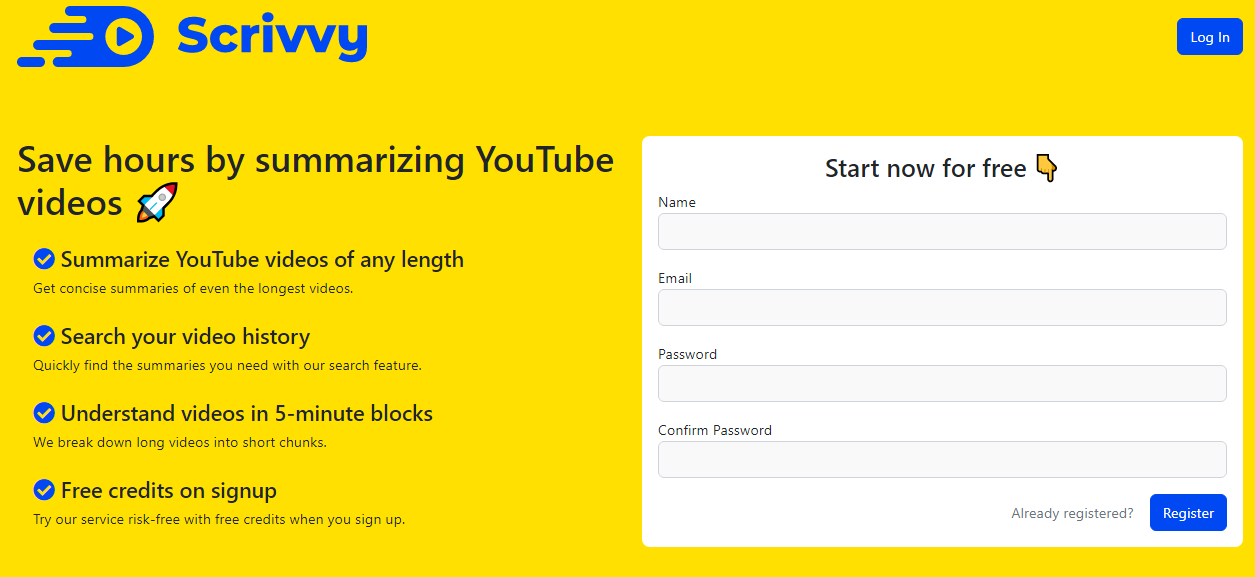 Optimize your time by accessing succinct summaries of YouTube videos, regardless of their length. Our service offers straightforward and efficient breakdowns, helping you quickly find the summaries you need through a user-friendly search feature. By distilling lengthy videos into bite-sized segments, we allow you to understand the content in just five minutes at a time. Additionally, you can conveniently browse your video history for easy reference. When you sign up, you'll also receive complimentary credits to try out our service with no obligation. The process of summarizing videos of any length has never been simpler, enhancing your viewing experience and making it more enjoyable. Discover how effortless it can be to stay informed without the time commitment of watching lengthy videos in full.
