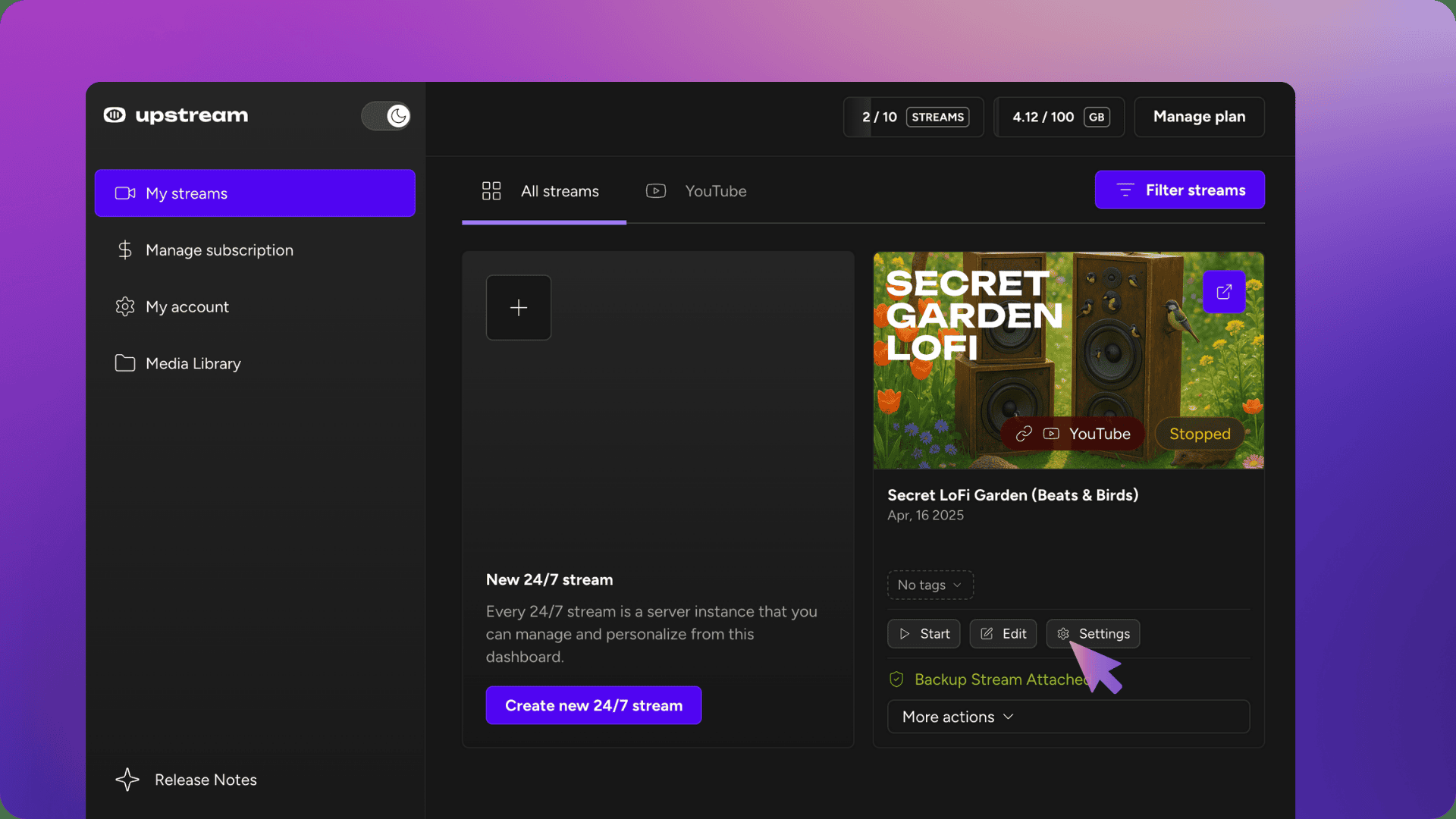 Upstream is a comprehensive live streaming solution that empowers creators to effortlessly build and sustain 24/7 YouTube live streams using pre-recorded videos, driving significant channel growth. The platform capitalizes on live video’s higher search ranking to dramatically increase views, subscribers, watch time, and monetization opportunities, backed by compelling performance metrics. Its innovative drag-and-drop stream designer offers a Figma-like experience, allowing users to customize streams with dynamic overlays, current song visualizers, and branded animations to captivate viewers. Upstream supports multistreaming to up to 10 platforms at once, including major social networks like Twitch, Facebook, TikTok, Kick, and Rumble, expanding reach across diverse audiences. Scheduling and automation features enable creators to plan broadcasts and ad placements efficiently, while auto-archiving preserves content for later engagement. The platform eliminates the need for complex server setups or technical know-how, making it ideal for creators at all experience levels. Users benefit from 24/7 live support and a simple interface that speeds up content creation workflows. Flexible subscription tiers accommodate different streaming needs, with special promotions available for lifetime discounts. Trusted by a global community of content creators, Upstream continuously innovates to keep pace with live streaming trends. It is a powerful tool for musicians, gamers, businesses, and anyone aiming to elevate their streaming game with professional results and minimal hassle.