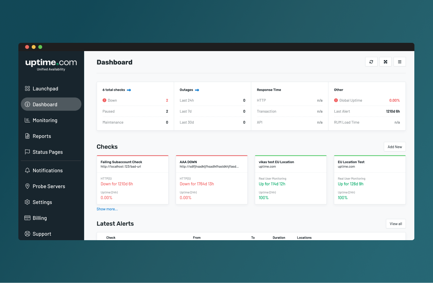 Uptime.com offers exceptional website monitoring services that enhance visibility and ensure availability, enabling engineering, operations, and SRE teams to effectively track and address their critical services. Our features, which are simple to use and of enterprise-grade quality, are consistently enhanced and offered at a competitive price. For multiple years running, we have been acknowledged by platforms such as G2, Sourceforge, and TechRadar Pro as one of the finest uptime monitoring solutions globally. Experience our services with a completely free trial to see the difference for yourself.