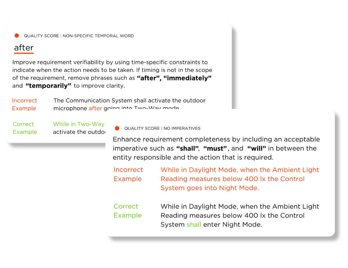 To make requirement authoring even easier, QRA has unveiled an innovative five-point scoring system that boosts engineers' confidence in their work. A perfect score indicates that the structure and phrasing are spot on, while lower scores provide actionable feedback for improvement. This functionality not only enhances the current requirements but also minimizes common mistakes and fosters the development of better authoring skills as time progresses. Furthermore, by leveraging these tools, teams can expect to see increased efficiency and improved project outcomes.