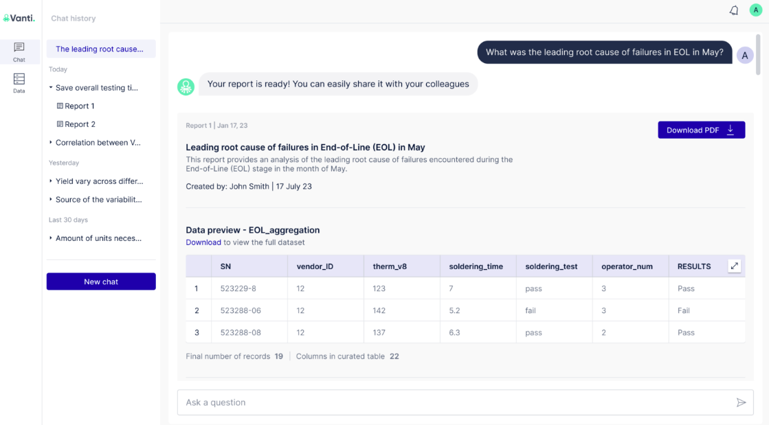 Vanti’s manufacturing analytics emerges as an exceptional resource for contemporary plant operators. It consolidates information from multiple manufacturing channels, creating an automated and intuitive platform that generates valuable insights. Utilizing advanced natural language processing, Vanti simplifies complex production trends into clear and actionable insights for users. This innovative method simplifies the data exploration journey, making it as simple as having a conversation. By allowing users to interact with their data through straightforward, conversational questions, it greatly enhances the overall user experience. Furthermore, the platform generates comprehensive visual aids, such as charts and highlights, which deepen the user's comprehension of the data. All these features are smoothly incorporated into a user-friendly interface, making it accessible to people with varying levels of technical expertise. With Vanti’s cutting-edge analytics, manufacturing professionals gain a deep understanding of plant operations, fostering better decision-making and increasing productivity. This comprehensive insight not only aids in refining manufacturing procedures but also empowers users to implement strategies that drive continuous improvement. Ultimately, Vanti’s platform serves as a catalyst for innovation within the manufacturing sector.