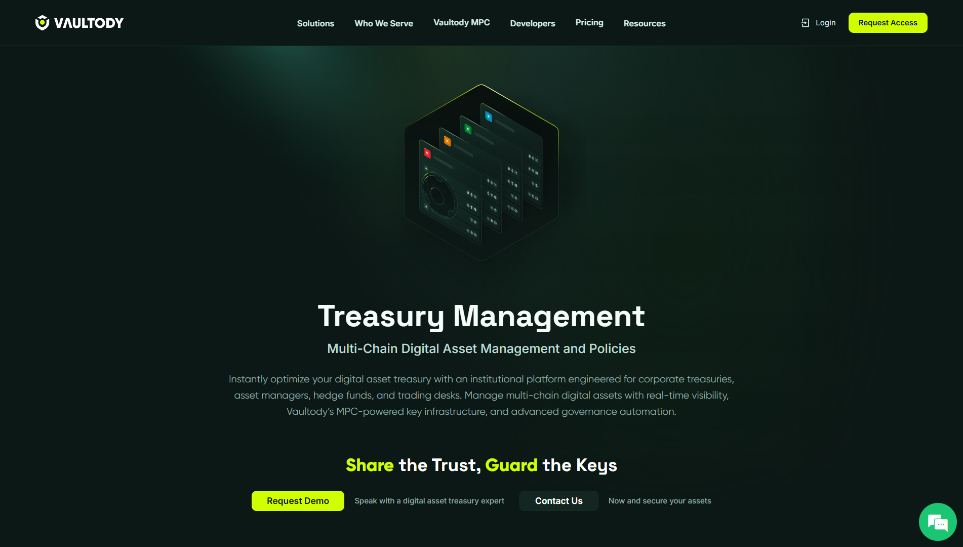 Vaultody is a B2B SaaS platform designed to power secure, non-custodial digital asset operations for businesses in crypto and blockchain markets. Using proprietary Multi-Party Computation technology, Vaultody provides a multi-chain environment with policy-driven governance, role-based access, and approval workflows that eliminate centralized risk. The platform supports Treasury Management, Direct Custody, and Wallet-as-a-Service models, enabling regulated and high-growth organizations to operate digital assets efficiently while meeting enterprise security and compliance requirements.