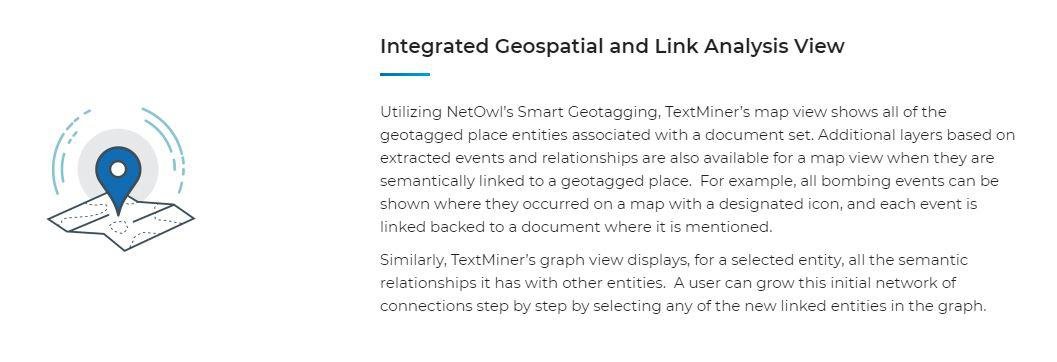 NetOwl TextMiner combines the renowned NetOwl Extractor with Elasticsearch to provide a cutting-edge text analytics platform. This software leverages the comprehensive capabilities of NetOwl, making it ideal for executing "what if" scenarios, engaging in discovery processes, supporting rapid investigations, and conducting in-depth research. By integrating all the text analytics tools from the NetOwl Extractor—such as entity extraction, relationship and event extraction, sentiment analysis, text categorization, and geotagging—TextMiner offers a robust text mining solution. The outcomes produced by the Extractor are efficiently stored within Elasticsearch, which enhances the system with a variety of intelligent search and analytical functions. The collaboration between Elasticsearch and NetOwl guarantees swift and scalable real-time text analysis, making it suitable for managing Big Data projects. Additionally, TextMiner features a user-friendly web interface that can be easily customized to meet diverse analytical requirements, allowing users to quickly extract the most pertinent insights from large text collections. This flexibility not only improves user experience but also facilitates more specialized analyses across different fields, catering to the unique needs of various industries.
