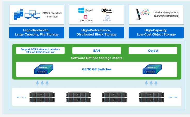 Sangfor aStor is a cutting-edge software-defined storage solution that integrates block, file, and object storage into a unified, elastically scalable resource pool, harnessing a fully symmetrical distributed architecture to enable on-demand provisioning of high-performance and cost-efficient storage tiers that meet diverse service requirements. This system can be implemented as an all-in-one hardware-software package or as independent software, scaling from a basic configuration of three commodity x86 nodes to extensive cloud-scale clusters with thousands of nodes, facilitating EB-level capacity expansion. Through its multi-node parallel processing and advanced caching strategies—including RDMA, SSD hot-data caching, and data layering—it delivers remarkable throughput, IOPS, and performance for small I/O operations, significantly boosting cache hit rates up to 90% and enhancing small I/O processing by as much as 65%. Moreover, its distributed metadata management allows for the effective management of billions of files without noticeable latency, solidifying its position as a powerful solution for contemporary storage dilemmas. In conclusion, Sangfor aStor emerges as a dynamic and efficient choice for enterprises aiming to refine their storage architecture while ensuring scalability and performance.