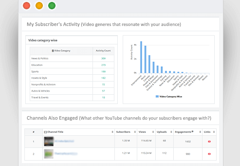 Competitor Tracking: Creators can track competing channels, monitoring changes in uploads, subscriber growth, and engagement metrics to evaluate their own progress against others.