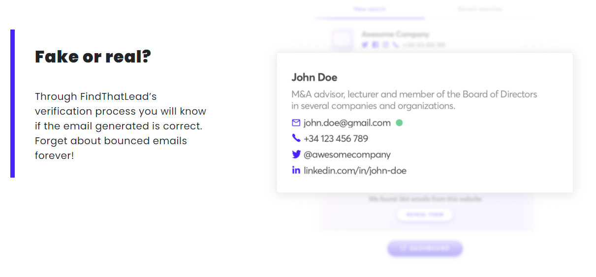 FindThatLead enables you to connect with key individuals who align with your objectives. This tool allows users to send free cold emails through a Chrome extension, providing access to essential business contact information and social insights while logged into LinkedIn. By signing up today, you can tap into a vast pool of potential clients each month. You can easily uncover authentic business emails of potential leads by simply inputting their first and last names along with their website addresses. Our advanced algorithm ensures that you won't have to worry about bounced emails, as it swiftly verifies the accuracy of email addresses. We are here to help you design a focused campaign and effectively deliver it to your leads, complete with all the necessary sales funnels and analytics to track performance and grow your business. Turn profiles from LinkedIn, Instagram, and other channels into confirmed email leads. You can choose from various audience segments based on factors such as location and keywords, which allows you to seamlessly connect with millions of qualified prospects and significantly improve your outreach strategy. With FindThatLead, you can optimize your lead generation process and enhance your marketing initiatives, making every effort count towards achieving your business goals. Additionally, you can monitor the results of your campaigns in real-time, ensuring that you continuously refine your approach for even greater success.