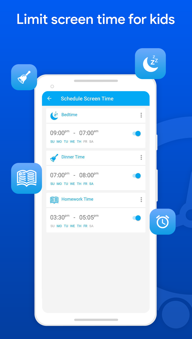 FamilyTime serves as a parental control application designed to help parents oversee and regulate their children's mobile device activities. With a comprehensive array of features, the app empowers parents to promote responsible and secure device usage among their kids. Key functionalities include: