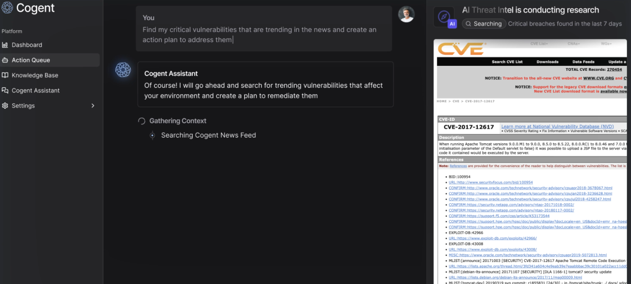 Cogent Security provides a state-of-the-art vulnerability management solution that utilizes artificial intelligence to autonomously oversee the entire lifecycle of vulnerability management, offering round-the-clock defense at impressive speeds while cutting down manual efforts by half. The platform initiates its process by gathering real-time data from your infrastructure, encompassing assets, configurations, threat intelligence, and the importance of business operations, enabling it to dynamically prioritize risks according to the probability of exploitation and the potential severity of their impacts. By focusing on return on investment, it pinpoints the most critical remediation tasks and automates the workflow orchestration necessary for deploying patches, configuration adjustments, or alternative security measures. With AI agents embedded in the framework, ongoing monitoring and adaptive planning are sustained as new vulnerabilities emerge, while program-level reporting supplies user-friendly dashboards and compliance documentation whenever required. Consequently, clients see a twofold reduction in the average time needed to address critical vulnerabilities and can resolve issues four times faster, all without needing to expand their current workforce. This revolutionary method not only bolsters security but also empowers organizations to use their resources more effectively, thereby strengthening their overall risk management framework. Ultimately, the platform ensures that businesses can remain resilient in an ever-evolving threat landscape.