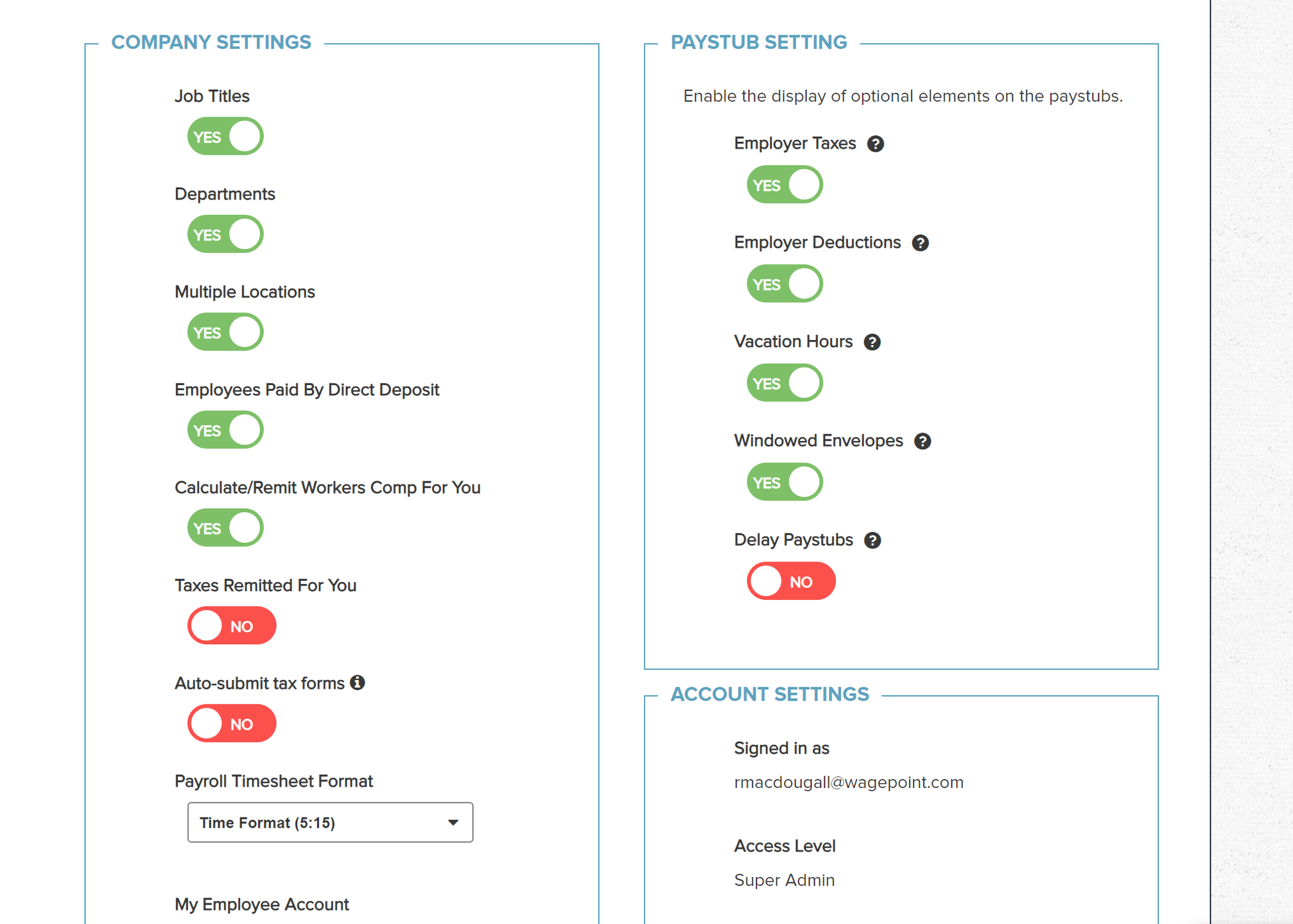In addition to offering key payroll functionalities such as wage calculation for employees and contractors, direct deposit services, automatic tax calculations, remittance payments, year-end reporting, and related documentation like T4s/ROEs in Canada and W2s/1099s in the US, Wagepoint provides several additional features: