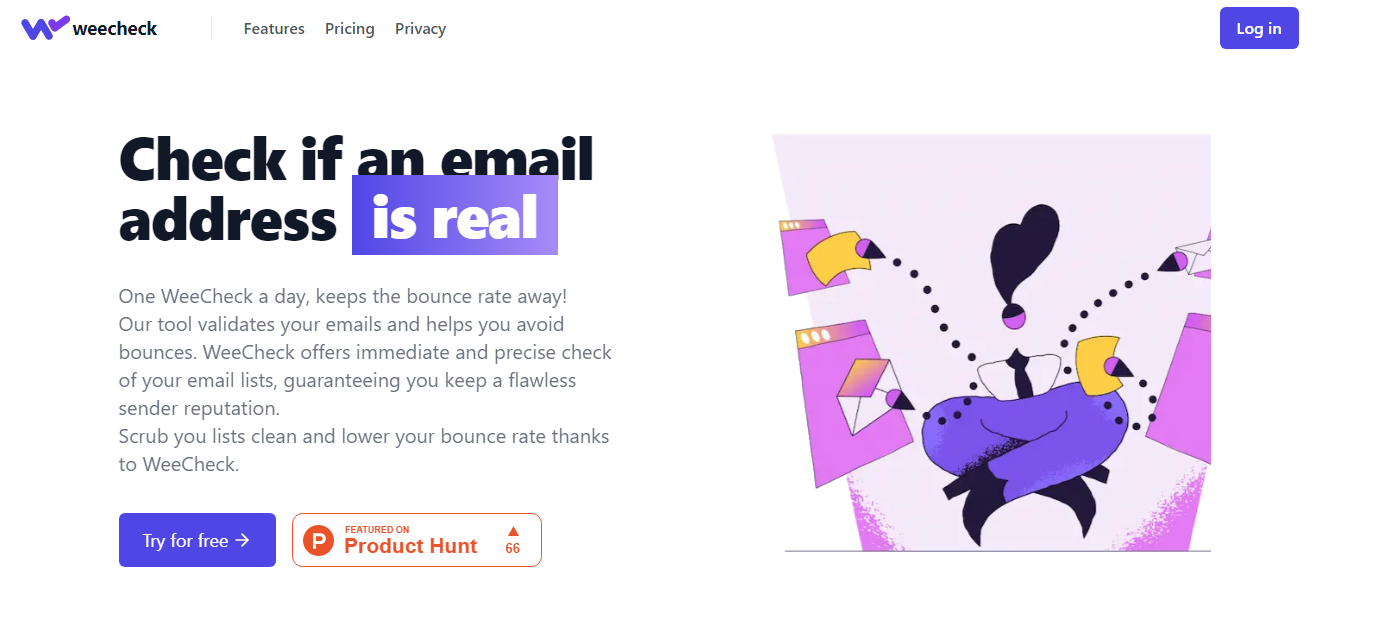WeeCheck helps you maintain a minimal bounce rate with a simple daily verification process! Our service meticulously checks your email addresses, allowing you to avoid unnecessary bounces. With WeeCheck, you get prompt and precise assessments of your email lists, ensuring your sender reputation is always stellar. By utilizing WeeCheck to clean your lists, you can greatly lower bounce rates. Improve the reliability of your data and interact with authentic contacts to elevate the results of your campaigns with WeeCheck. Invalid emails shouldn't stand in the way of your achievements; harness the benefits of WeeCheck today and watch your success soar!
