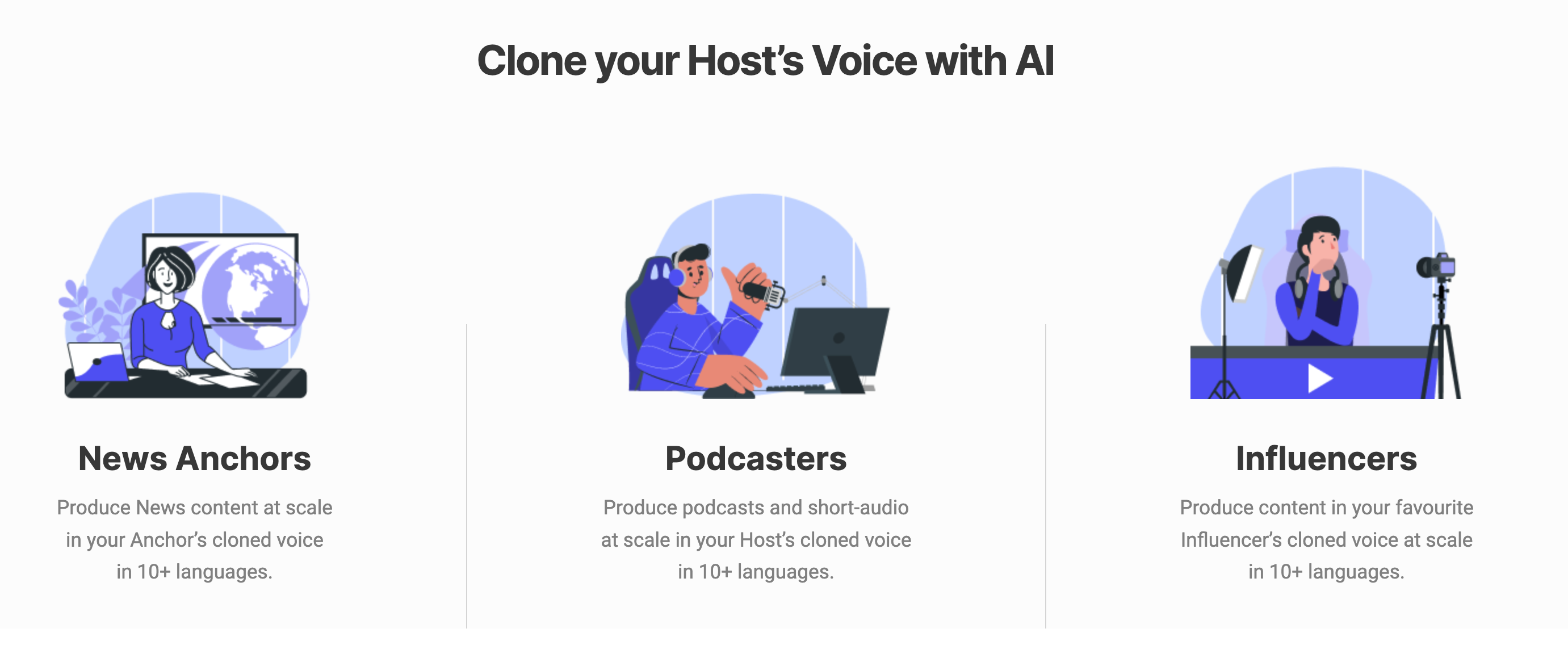 Deepsync enables media organizations to efficiently generate top-notch audio, artificial intelligence voice-overs, and brief audio segments for news updates, website material, and multimedia content for social platforms. Additionally, it offers the ability to produce daily short and extended podcasts featuring a lifelike AI voice. By streamlining the audio creation process, it liberates production from its conventional limitations. This innovation opens up new possibilities for creativity and content diversity.