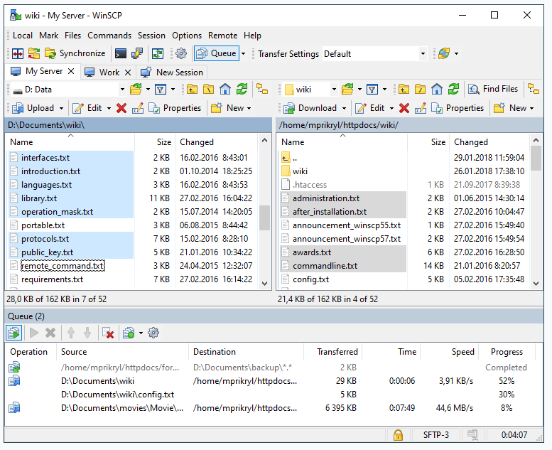 WinSCP is a popular file transfer client for SFTP and FTP specifically designed for the Microsoft Windows operating system. It enables users to efficiently move files between their local computers and remote servers, supporting a variety of protocols such as FTP, FTPS, SCP, SFTP, WebDAV, and S3. As an open-source tool, WinSCP offers a free solution for file transfers and functions as a client for WebDAV, S3, and SCP, catering to the needs of Windows users. Its primary function is to facilitate the transfer of files between local and remote environments. Furthermore, WinSCP includes scripting features and basic file management capabilities, which significantly enhance its overall utility. The software is designed with a user-friendly graphical interface that is available in numerous languages, ensuring accessibility for a wide range of users. It integrates seamlessly with the Windows operating system, providing convenient functionalities like drag-and-drop file transfers, URL handling, and customizable shortcut icons. Users can execute all standard file operations while enjoying support for various protocols, including SFTP, SCP over SSH, FTP, WebDAV, and S3. In addition, WinSCP accommodates batch file scripting and provides a command-line interface, along with a .NET assembly for those who need more advanced programming features. Directory synchronization can be performed through several semi-automatic or fully-automatic methods, adding to its versatility. The built-in text editor, shared site settings with PuTTY, and compatibility with multiple authentication methods—such as password, keyboard-interactive, public key, and Kerberos—further elevate the user experience. Overall, WinSCP is distinguished as a robust and comprehensive solution for secure file transfers and related operations, making it an invaluable asset for users who require reliable data transfer capabilities.