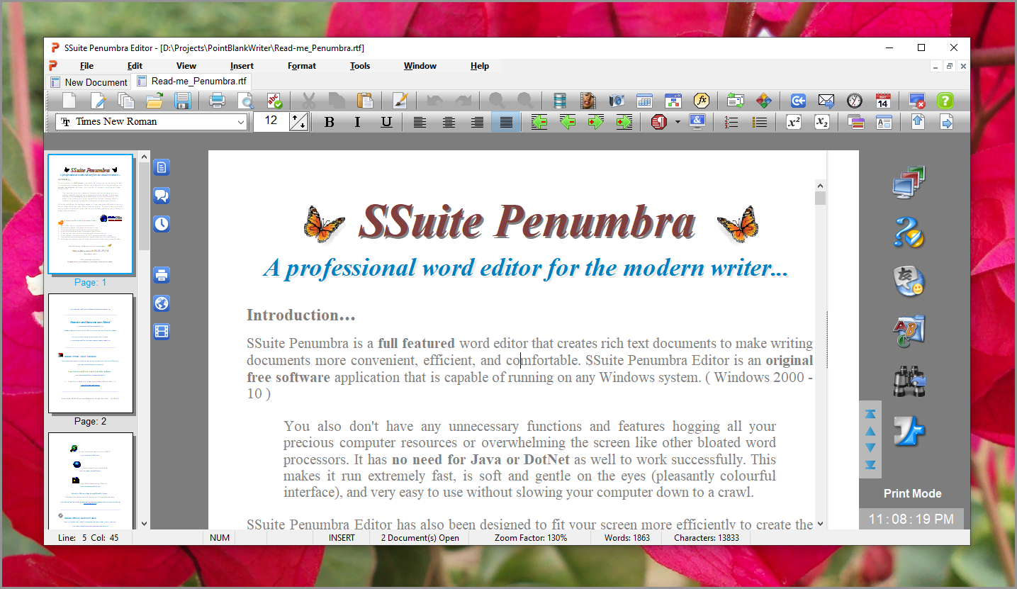 SSuite Penumbra stands out as a comprehensive word processing tool that enhances the document creation experience, making it not only more efficient but also more enjoyable and user-friendly. As a completely free and innovative software solution, it is compatible with any operating system, ensuring broad accessibility for users.