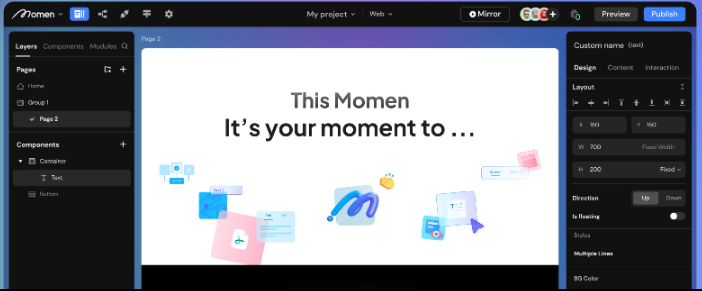 Effortlessly transition from a minimum viable product to a fully developed SaaS solution by utilizing Momen, which ensures a user-friendly learning journey. The entire process is streamlined, taking you from the initial prototype phase to the final deployment of your application, thanks to a robust backend that removes the necessity for traditional development approaches. You can craft applications in a matter of weeks and easily enhance your ideas without needing any coding expertise. With clear project-based pricing that avoids hidden costs and eliminates dependency on external backend services, you can accurately estimate your budget. Momen also supports advanced collaboration workflows with access control, allowing you to build fully customized applications tailored for projects that could accommodate millions of users from the beginning. Each aspect of your product can be visually designed with Momen's easy-to-use drag-and-drop editor, enabling you to outline user journeys and interactions while unleashing your creative flair as a designer. Furthermore, our dynamic and interactive canvas offers a holistic view of the user experience throughout your application. As you construct and evaluate features, you can observe your application evolving in real-time with a live preview that preserves navigation state in the browser, ensuring a fluid testing experience. Momen not only empowers you to create applications but also helps you manifest your ideas in a lively and interactive manner, making the entire process both enjoyable and efficient. In essence, Momen transforms your vision into a reality, bridging the gap between concept and execution seamlessly.