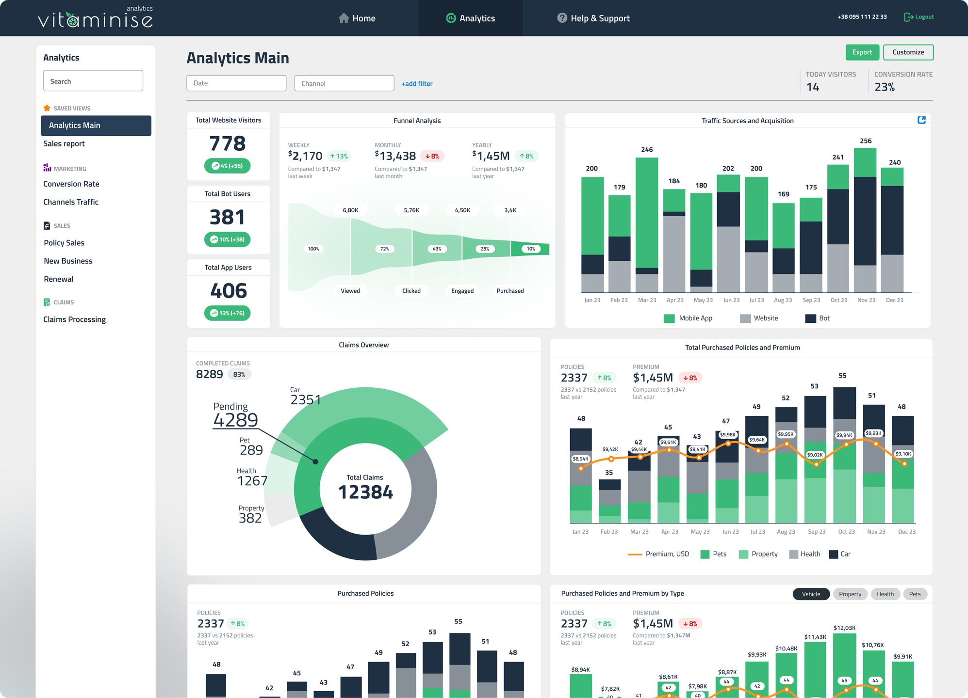 Vitaminise, an innovative customer experience automation solution created by DICEUS for the insurance sector, consists of five distinct products tailored for insurers providing a variety of offerings such as health, automotive, and property and casualty insurance. This platform aims to enhance customer interaction and streamline the processes of policy acquisition and claim submissions through features like a Mobile App and Chatbot. Additionally, Vitaminise includes tools for gathering Customer Feedback and performing Data Analytics, enabling insurers to monitor key metrics related to customers, finances, and claims while deriving significant insights. All components of Vitaminise operate within an omnichannel framework, ensuring maximum business value is delivered to users. By integrating these advanced tools, insurance companies can significantly improve their operational efficiency and customer satisfaction levels.