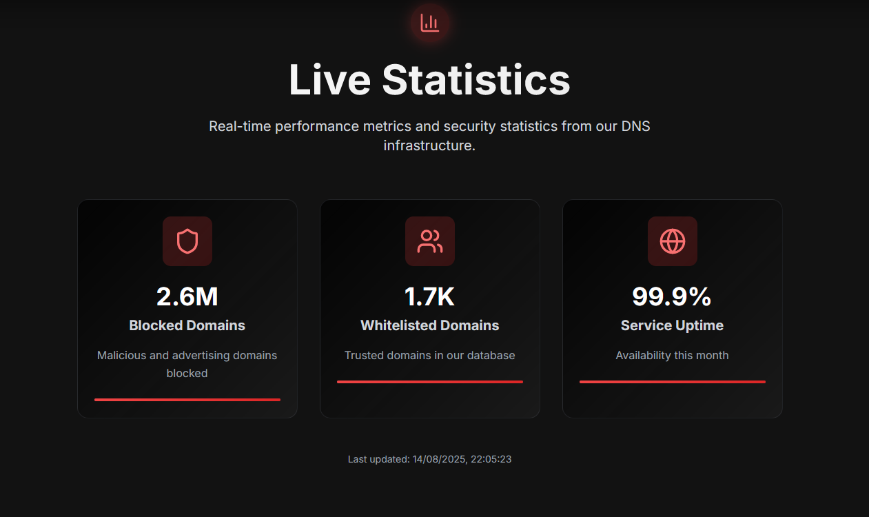 DNSGuard is a secure, enterprise-ready DNS resolution service designed for organisations that prioritise speed, uptime and data privacy. By blocking ads, trackers, phishing domains and malware at the DNS level, it improves network security and user productivity.