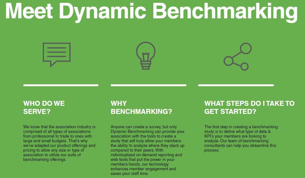 The realm of associations includes a diverse range of organizations, such as both professional and trade groups, each functioning with different budgetary capacities. To address this variability, we have customized our product offerings and pricing models, allowing any association—regardless of its size or category—to benefit from our extensive benchmarking solutions. Although many organizations can create surveys, only Dynamic Benchmarking provides the essential tools needed for your members to effectively assess their performance in comparison to their peers. Our tailored, on-demand reporting and intuitive web tools empower your members with analytical capabilities, enhancing engagement while also alleviating workloads for your staff. The first step in initiating a benchmarking study is to identify the specific data and key performance indicators (KPIs) that your members are interested in analyzing. Our team of benchmarking consultants is ready to support you in refining this process, ensuring your association reaps the greatest benefits from its benchmarking efforts. Ultimately, we aim to cultivate a collaborative atmosphere where associations thrive and members acquire vital insights into their competitive positioning, thereby enabling them to make informed decisions for future growth. In doing so, we strive to create an environment that not only supports individual success but also strengthens the community as a whole.