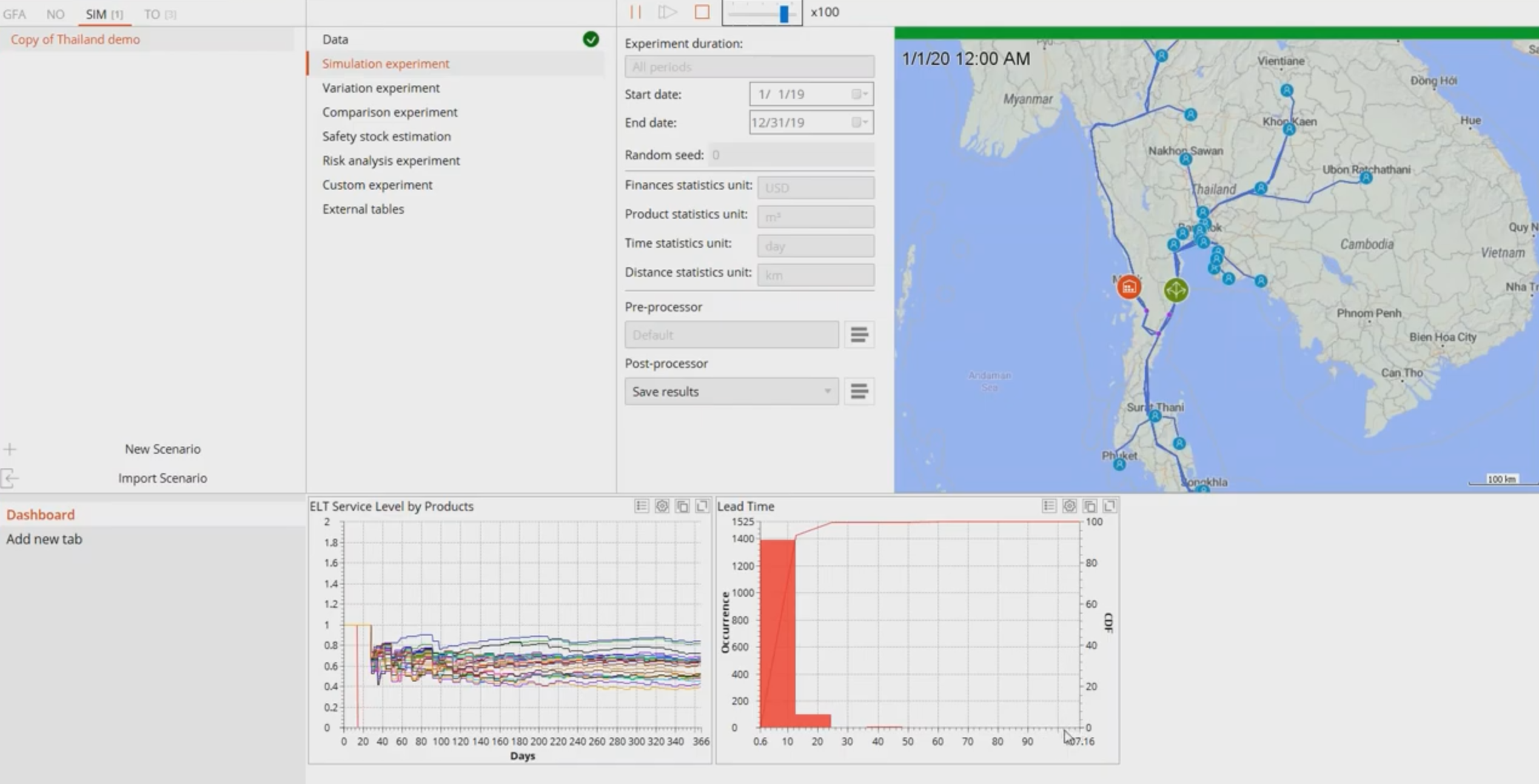 AnyLogistix is a sophisticated software solution for supply chain analytics that merges dynamic simulation with analytical optimization to assist in the design, enhancement, and evaluation of your supply chain. Through network optimization, you can identify the most effective supply chain structure. The Transportation optimization experiment guides you in finding optimal delivery routes, assessing fleet composition, and deciding between using third-party logistics or your own vehicles. Furthermore, the outcomes of analytical optimization can be transformed into a dynamic simulation model. This transformation enables the exploration of time-sensitive variables, unpredictable events, potential risks, actual system performance, and the interactions among various components of your supply chain. By leveraging simulation, you can achieve more precise inventory management and forecasting while considering network-related risks and dynamics, thereby boosting your supply chain's resilience. Additionally, the software offers adaptable statistics and animated maps for enhanced visualization and analysis. This comprehensive approach ensures that you are well-equipped to navigate the complexities of modern supply chain management.