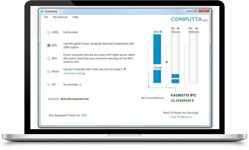 Turn your computer into a continuous income generator effortlessly! It’s absolutely free and available to all! Computta is an innovative service and application crafted by cryptocurrency experts to enable any computer owner to easily earn digital currency automatically. This cutting-edge method allows anyone with a computer to register, download our intuitive smart mining application, and begin accumulating cryptocurrency in under five minutes. The setup is remarkably simple, requiring just a few clicks and a brief benchmarking phase. The Computta Smart Miner app is designed to be compatible with virtually all Windows operating systems, ensuring it reaches a broad user base. After installation, the Smart Miner runs quietly in the background, functioning automatically without the need for any technical skills. You can finalize the installation within just two minutes and start generating revenue without adjusting any further settings. Now is an ideal moment to tap into your computer's potential and venture into the exciting realm of cryptocurrency mining, as countless users have already begun to see impressive results!