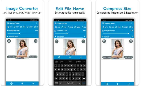 Image Converter is a multifunctional application that enables users to transform their photos and images into a wide array of formats such as JPG, JPEG, PDF, GIF, PNG, BMP, and WEBP. One of its key features is the ability to save converted images directly to the user's gallery, ensuring easy access and sharing of formats including .jpg, .pdf, .png, .jpeg, .bmp, .gif, and .webp. Users can conveniently select their preferred output format and customize the file name of the converted images. The application guarantees high-quality conversions, preserving the original resolution, and allows for direct sharing from its viewing interface. It streamlines the process of converting images into various formats and aids in managing all converted files from the gallery, where users can opt to share or delete as desired. This intuitive app is ideal for batch conversions, enabling smooth transitions between different formats, and is entirely free to use; simply choose one or multiple images to kick off the conversion process. Additionally, the app's smooth interface promotes regular use, transforming image conversion into a simple and efficient task. With its robust features and user-friendly design, it stands out as an essential tool for anyone needing to work with different image formats.