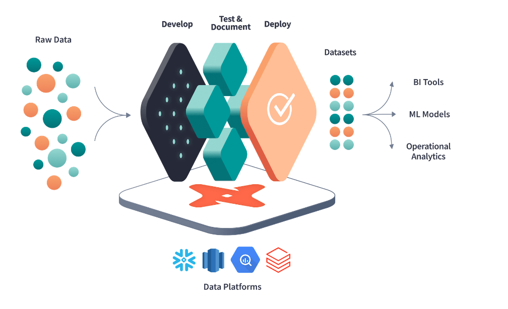 dbt serves as the driving force behind the transformation layer in contemporary data pipelines. After data is ingested into a warehouse or lakehouse, dbt allows teams to cleanse, model, and document it, preparing it for analysis and AI applications. With dbt, teams can: - Scale the transformation of raw data using SQL and Jinja. - Manage pipeline orchestration with integrated dependency management and scheduling features. - Establish trust through automated testing and continuous integration processes. - Gain insights into data lineage across models and columns for quicker impact evaluation. By incorporating software engineering methodologies into pipeline development, dbt empowers data teams to create dependable, production-quality pipelines, thereby speeding up the journey to actionable insights and providing data that is ready for AI applications.