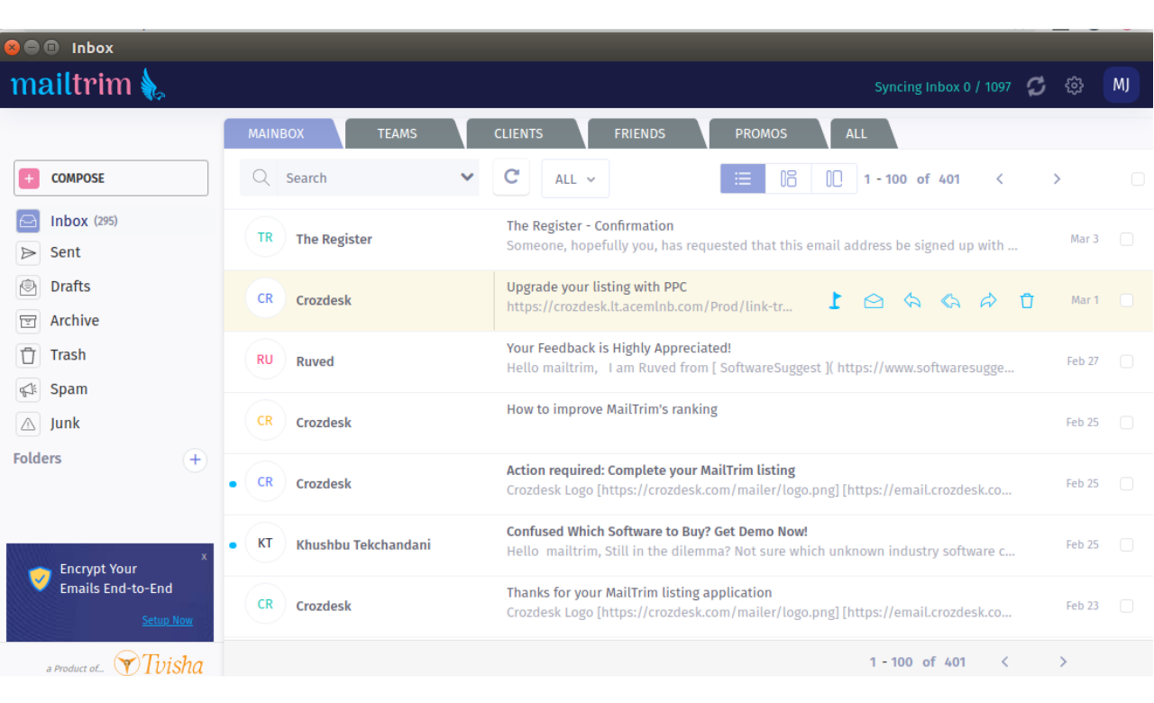 Transforming the way you manage emails in your inbox, this exceptional mail application stands out for facilitating the sending and receiving of well-organized email correspondence. It allows seamless synchronization of all your emails while managing contacts from various accounts in a single location. As the premier free email client, it offers extensive customization options, ensuring a unique business email appearance. Marketed as the top alternative to Outlook, Mailtrim revamps your email experience. With a strong emphasis on privacy and security, you maintain complete control over your communications around the clock. This secure email client can be purchased and utilizes PGP encryption to protect your messages. Featuring a refined and sophisticated user interface, it prioritizes high user experience with a sleek design, making it easy to locate anything you need quickly! This outstanding free email client is suitable for both personal and professional use, boasting an intuitive interface that simplifies navigation. Additionally, it caters to users on both Mac and Windows, enabling them to send smart messages effortlessly.