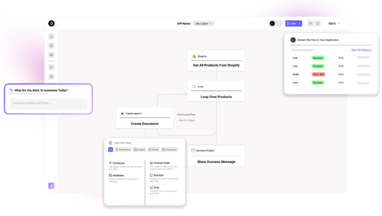 A groundbreaking no-code platform that utilizes AI for developers allows for the effortless connection of various data streams, making the development of multiple app integrations a simple task. By employing an intelligent agent, users can create APIs merely through straightforward human prompts, thus enabling new integrations without the necessity of traditional coding methods. The platform provides a Universal API designed to meet all application needs, equipping users to build, expand, reuse, and consolidate their integration and authentication efforts. In a matter of minutes, users can develop high-performance, enterprise-ready APIs that feature built-in observability and compliance attributes. The capability to integrate applications in just a few clicks ensures that instant data orchestration is possible across all connected systems. This functionality allows teams to focus on scaling their operations rather than grappling with the complexities of their infrastructure, as they can effectively manage, monitor, and analyze their systems. Issues like inadequate performance, lack of insights, and scalability challenges can lead to notable inefficiencies and prolonged downtimes. Furthermore, the accumulation of API integration backlogs and complicated connectors often stifles innovation and hampers productivity. Addressing the issue of reconciling data discrepancies across different systems can consume countless hours of resources. Fortunately, users can create and integrate connectors with any data source, regardless of its age or format, streamlining and optimizing the entire process. As a result, this platform not only accelerates integration speed but also significantly improves overall operational efficiency, thus enabling businesses to respond swiftly to market demands. Ultimately, the enhanced capabilities fostered by this innovative solution create a more agile environment for developers and teams alike.