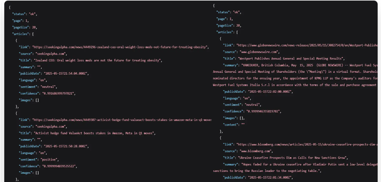 Finlight.me is a cutting-edge news API tailored for developers, providing access to both current and historical financial, geopolitical, and market-related news from a wide range of trusted sources in a straightforward JSON format. It boasts advanced querying capabilities, which encompass keyword searches using boolean operators, date and time filtering, options to include or exclude particular sources, language choices, sorting features, and pagination, all designed to allow for accurate information targeting. The API presents both REST and WebSocket endpoints, with the WebSocket option supporting the streaming of newly published articles that match live queries, complemented by sentiment analysis labels and confidence metrics. Furthermore, the extended article endpoints deliver in-depth content and summaries based on the user's subscription tier. With finlight's AI-driven sentiment tagging and insights into market influence, developers are equipped with valuable, actionable context, while WebSocket streaming capabilities enhance real-time notifications and comprehensive analytics for better decision-making in ever-evolving environments. Overall, finlight serves as an essential resource for developers aiming to maintain a competitive edge in the financial sector, enriching their applications with timely and relevant information.