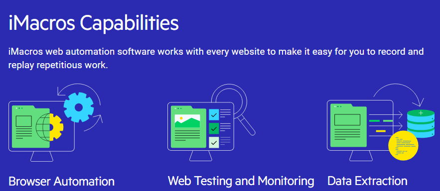 iMacros stands out as a premier solution for web automation, data extraction, and testing, now upgraded with Chromium browser technology to ensure it works seamlessly with all modern websites. This enhancement allows it to accommodate platforms that utilize dialog boxes, Javascript, Flash, Flex, Java, and AJAX. Users can perform in-browser tests without any hassle on both Chrome and Firefox. Data handling is flexible, as it can be stored in standard file formats or sent directly to a database through an API. The iMacros web automation software is crafted to operate with any website, making the task of recording and replaying repetitive actions significantly easier. Users are able to automate tasks across both Chrome and Firefox without needing to master a new scripting language, which simplifies the automation of even the most complex tasks. This tool supports functional, performance, and regression testing on modern websites while accurately measuring web page response times. Additionally, users can schedule macros to execute at regular intervals on their live website, ensuring continuous operational integrity and optimal performance. With these features, iMacros not only streamlines workflows but also empowers users to effectively enhance productivity while ensuring their websites function flawlessly. By leveraging the capabilities of iMacros, users can focus more on strategic tasks rather than getting bogged down by routine activities.