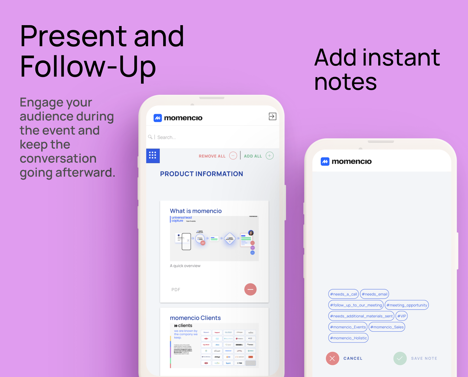 Whether you're attending trade shows, hosting B2B events, or running global conferences, momencio streamlines your event marketing and lead management strategy—helping you turn every event into measurable ROI.
