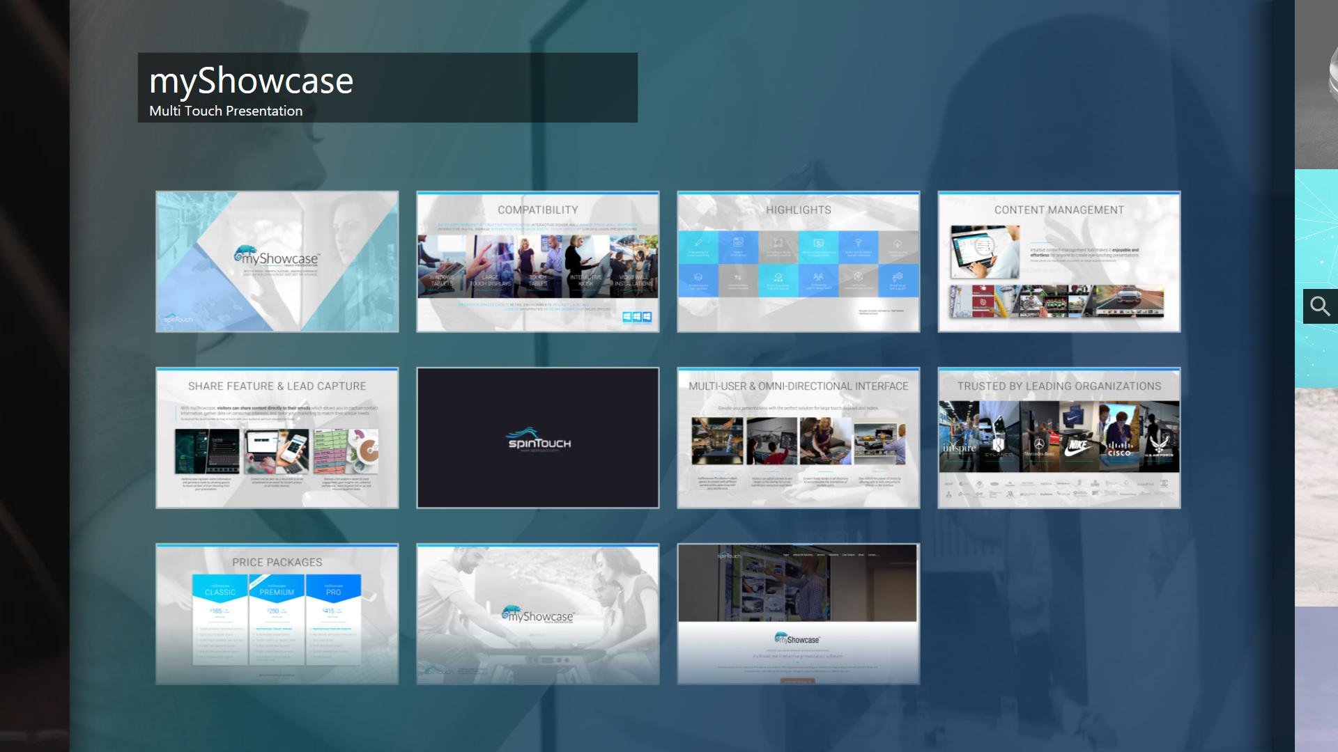 In an instant, you can engage your audience more effectively than ever. MyShowcase positions your content prominently for potential clients, customers, and brand supporters. Users will effortlessly access your message via an interactive touch-screen software interface. Transform your outdated materials, brochures, and websites into dynamic presentations that invite interaction. Guests will enjoy navigating your content through user-friendly screen flows. MyShowcase offers support for multiple layers of interactive touch-based content, facilitating an engaging exploration of your message. Now, with the capability for multitouch, your showcase can truly come to life, providing a memorable experience for all. Embrace this innovative approach to captivate and retain your audience's attention.
