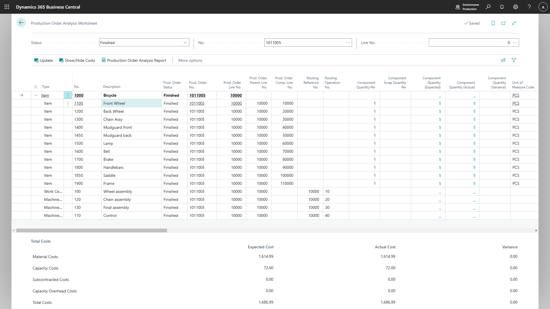 The Production Order Analysis app, a vital component of the Enhanced Planning Pack, serves as a robust tool within Dynamics 365 Business Central aimed at optimizing material resource planning (MRP) and facilitating quicker, more informed decisions regarding inventory and production management.
