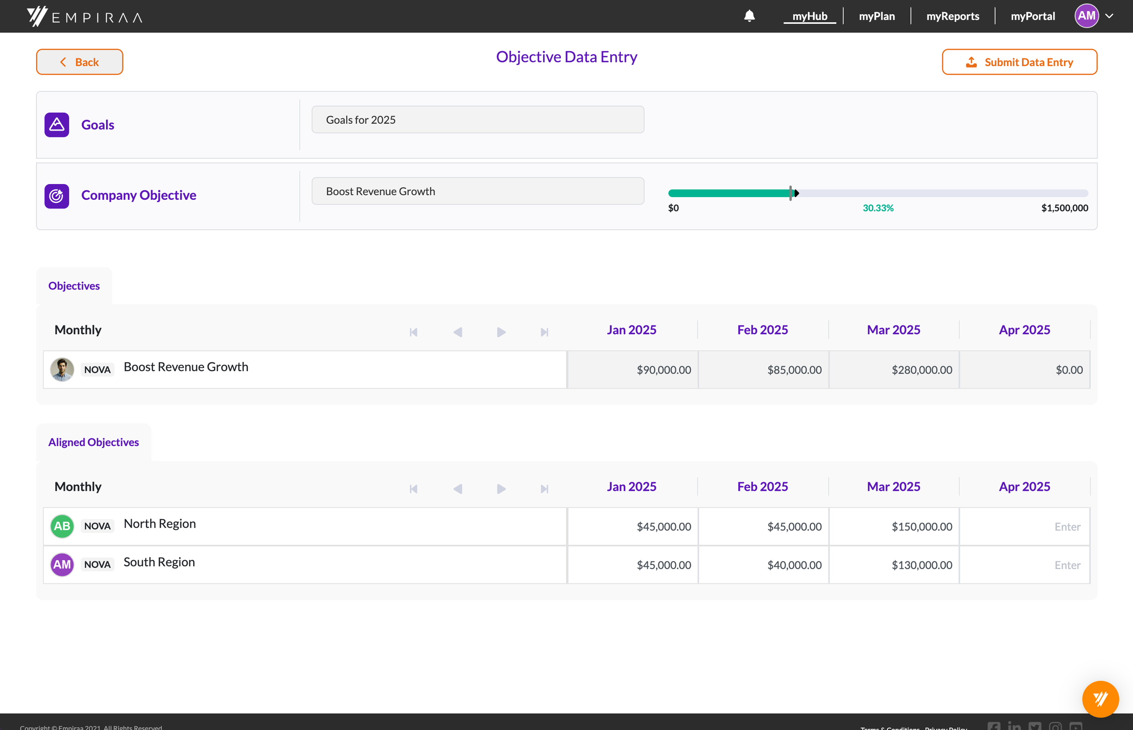 Inside the platform, users can build out strategic plans using pre-built or custom templates, create linked objectives, assign responsibilities, and connect key business data for live tracking. Empiraa integrates with tools like Xero, Google Sheets, and HubSpot to provide real-time visibility into performance, enabling your clients to stay accountable and proactive—without chasing updates or navigating spreadsheets.