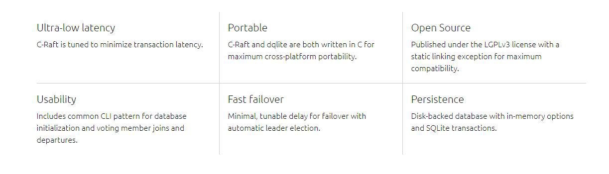 Dqlite is a fast, embedded SQL database that provides persistent storage and employs Raft consensus, making it particularly suitable for robust IoT and Edge devices. Often referred to as "distributed SQLite," Dqlite enhances SQLite’s functionality across numerous machines, ensuring automatic failover and high availability to keep applications running smoothly. It utilizes C-Raft, an optimized version of Raft in C, which delivers outstanding performance in terms of transactional consensus and fault tolerance while retaining SQLite's well-known efficiency and compactness. C-Raft is crafted to minimize transaction latency, allowing for quicker operations. Both C-Raft and Dqlite are developed in C, which guarantees their portability across different platforms. Released under the LGPLv3 license, which includes a static linking exception, it ensures widespread compatibility. The system also offers a standard command-line interface for database initialization and managing the membership of voting members. Along with this, it includes configurable delays for failover processes and automatic leader election mechanisms. Moreover, Dqlite accommodates a disk-backed database option alongside in-memory functionalities and complies with SQLite's transaction protocols. This combination of capabilities positions Dqlite as a formidable option for contemporary data storage challenges, making it an excellent choice for developers looking for a resilient and efficient database solution.