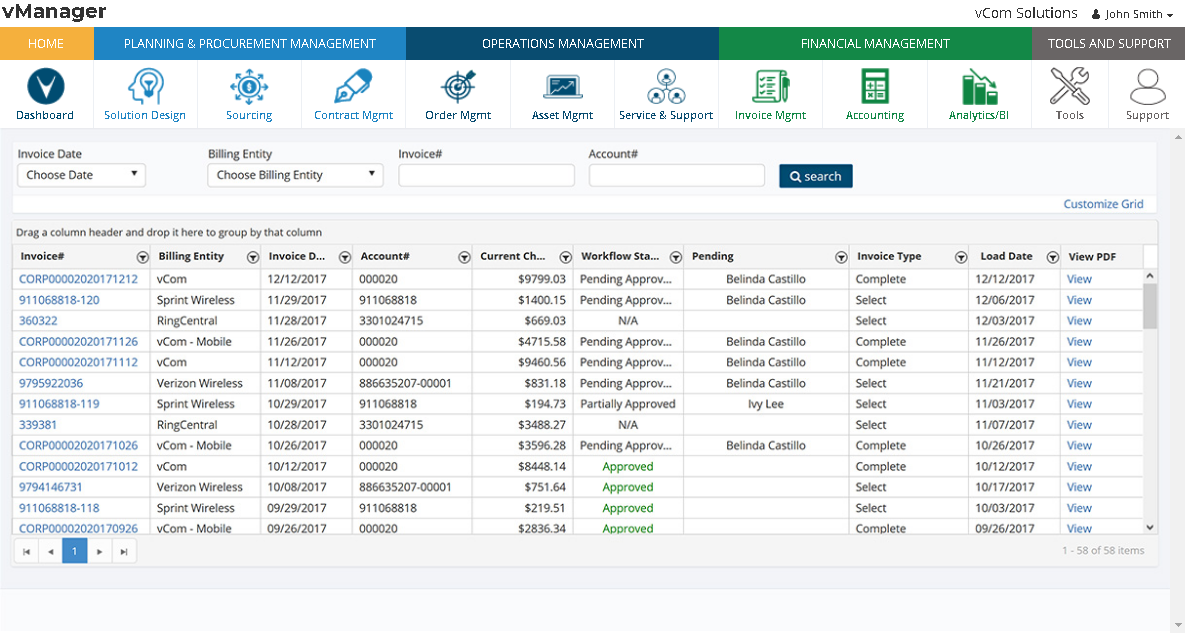 vManager, developed by vCom Solutions, is a recognized and award-winning tool designed for effective telecom management. This cloud-based solution enables organizations to monitor their communication expenditures across various carriers and manage their inventory efficiently. Through interactive graphs and charts, users can visualize monthly trends and perform detailed analyses of their communications spending, segmented by type, location, and carrier. Such insights empower businesses to assess whether they are optimizing their communications investments and facilitate more informed decision-making processes. Additionally, vManager offers features that streamline the management of telecom assets, further enhancing operational efficiency.