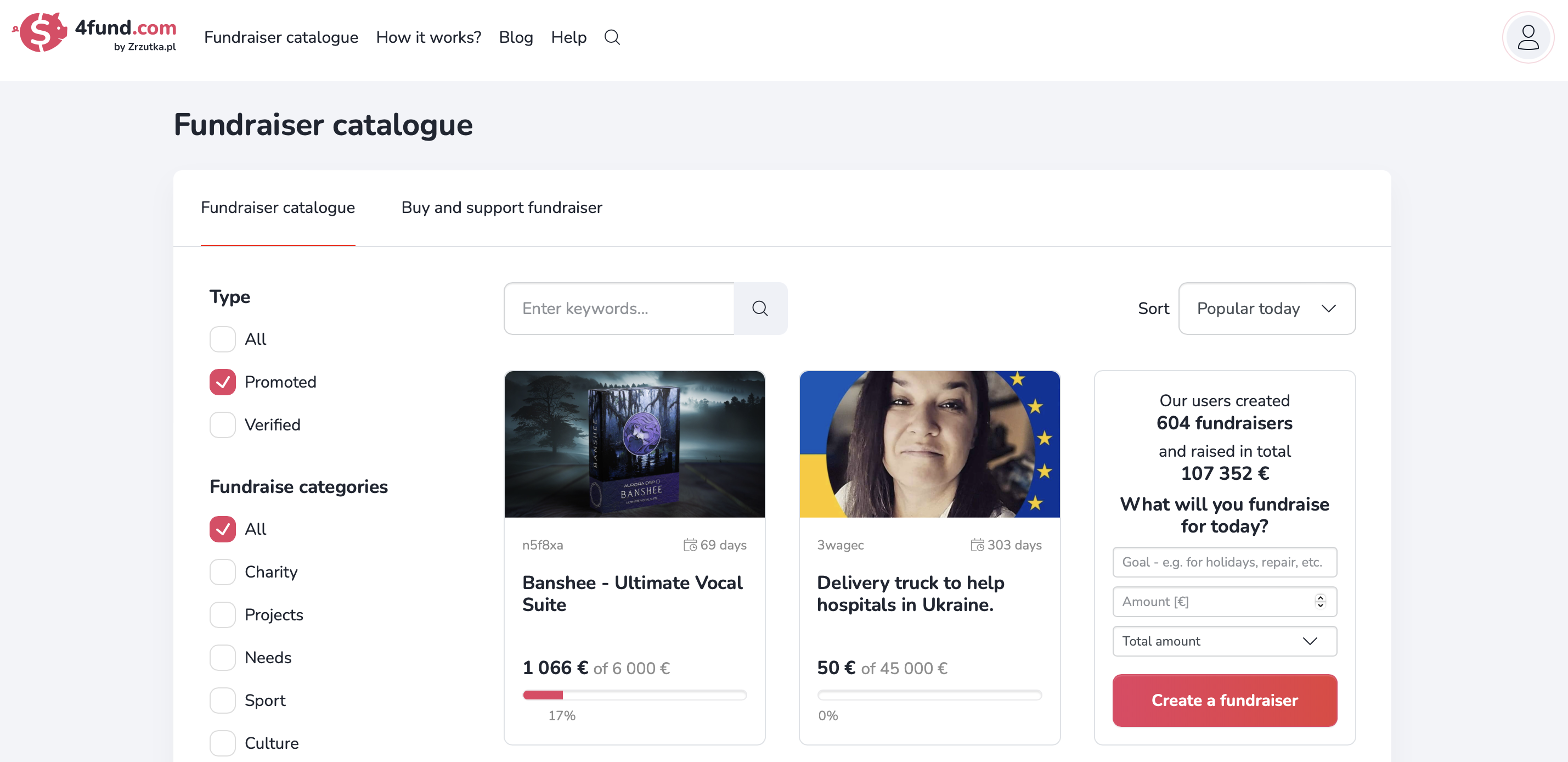 4fund.com, a recently launched crowdfunding platform in Europe, has been developed by zrzutka.pl, a reputable Polish company boasting over a decade of expertise in the field. This platform stands out by providing campaigns without fees and immediate availability of collected funds. Users can enjoy a multitude of features such as auctions, QR code tracking links, incentives, and options for ongoing fundraising endeavors. These diverse functionalities significantly enrich the user experience, positioning 4fund.com as a comprehensive solution for all crowdfunding needs. Additionally, the platform's commitment to user satisfaction may attract a wide range of projects seeking financial support.