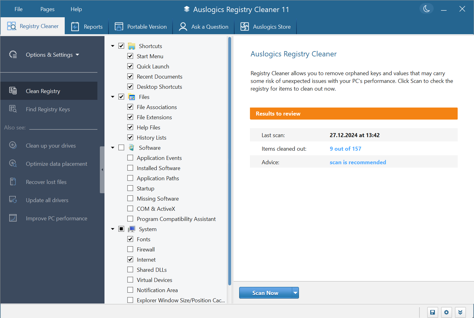 Uncover a robust Registry cleaner featuring over 15 scanning categories designed to detect and remove invalid Registry items effectively. You can personalize your cleaning routine by including or excluding specific keys and choosing from four distinct scanning depths. With 50 Registry tweaks at your disposal, you can enhance and personalize your Windows environment, making it easier to optimize performance and address any issues that may arise. Registry Watcher provides real-time monitoring of Registry keys, allowing you to quickly identify which processes are causing system changes. You can review, save, and export these Registry modifications, and even apply filters based on the type of operation or the data involved. To ensure additional safety, automated backups or comprehensive registry backups can be created. Additionally, a Scheduled Auto Clean feature allows you to program your computer to be cleaned daily, weekly, or monthly, utilizing your chosen scanning method. There is also a portable version available for added convenience, making it easy to maintain your system on the go. This comprehensive suite helps ensure your system runs smoothly and efficiently at all times.
