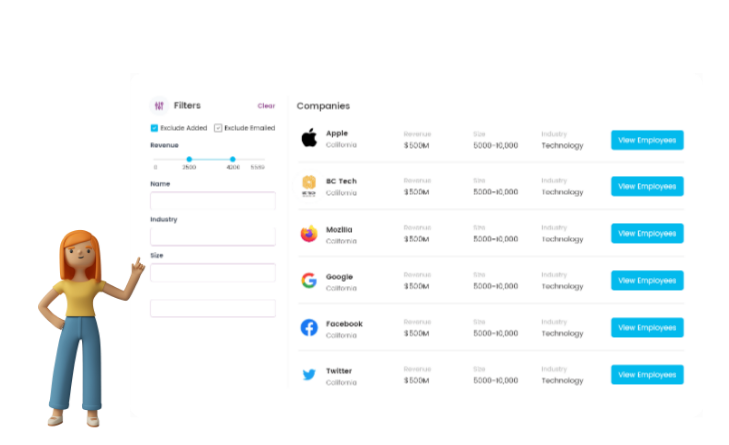 - Comprehensive Prospect Information: We collect 40 essential data points for each prospect, including their first name, last name, email address, and more.
