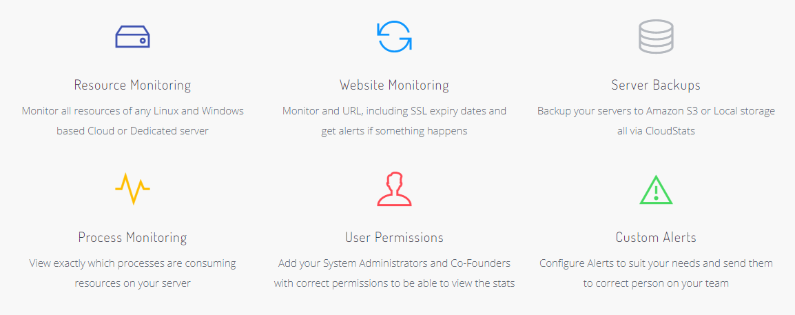 Continuously oversee all resources associated with dedicated or cloud servers for both Linux and Windows systems. You can also keep an eye on URLs, monitor SSL expiration dates, and get notified if any problems occur. Utilizing CloudStats enables you to back up your servers to either Amazon S3 or local storage solutions. This tool helps you pinpoint which processes are consuming server resources. You can also grant access to relevant statistics to your system administrators and co-founders by assigning them the necessary permissions. Customize alert settings to suit your needs and ensure they reach the appropriate team members. CloudStats acts as a thorough website and server monitoring tool for both Linux and Windows environments. It functions by deploying an agent on your server, which gathers and sends data to the monitoring platform every minute, thereby providing a consistent flow of information. The agent forms a secure SSL connection for safe data transmission, necessitating the opening of ports 443 and 80 to ensure effective operation. Port 443 is used for data transfer, while port 80 is responsible for sending pings and keep-alive signals, which maintain ongoing communication. This configuration not only allows for proactive management but also enables quick responses to potential issues, thus significantly improving overall server reliability. Furthermore, regular updates from the monitoring platform help you stay informed about any changes or anomalies that may affect performance.