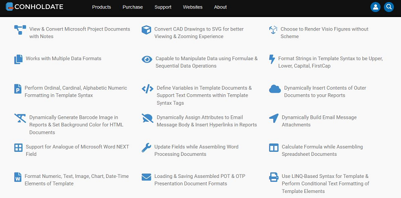 Conholdate.Total for Java is a comprehensive suite that consolidates all Java APIs for various file formats provided by Aspose and GroupDocs into one package. This powerful tool facilitates the creation, manipulation, and conversion of over 100 file formats, including Word, Excel, PowerPoint, Outlook, Visio, PDF, and more, specifically for Java developers. It supports an extensive array of document processing functionalities, which include: