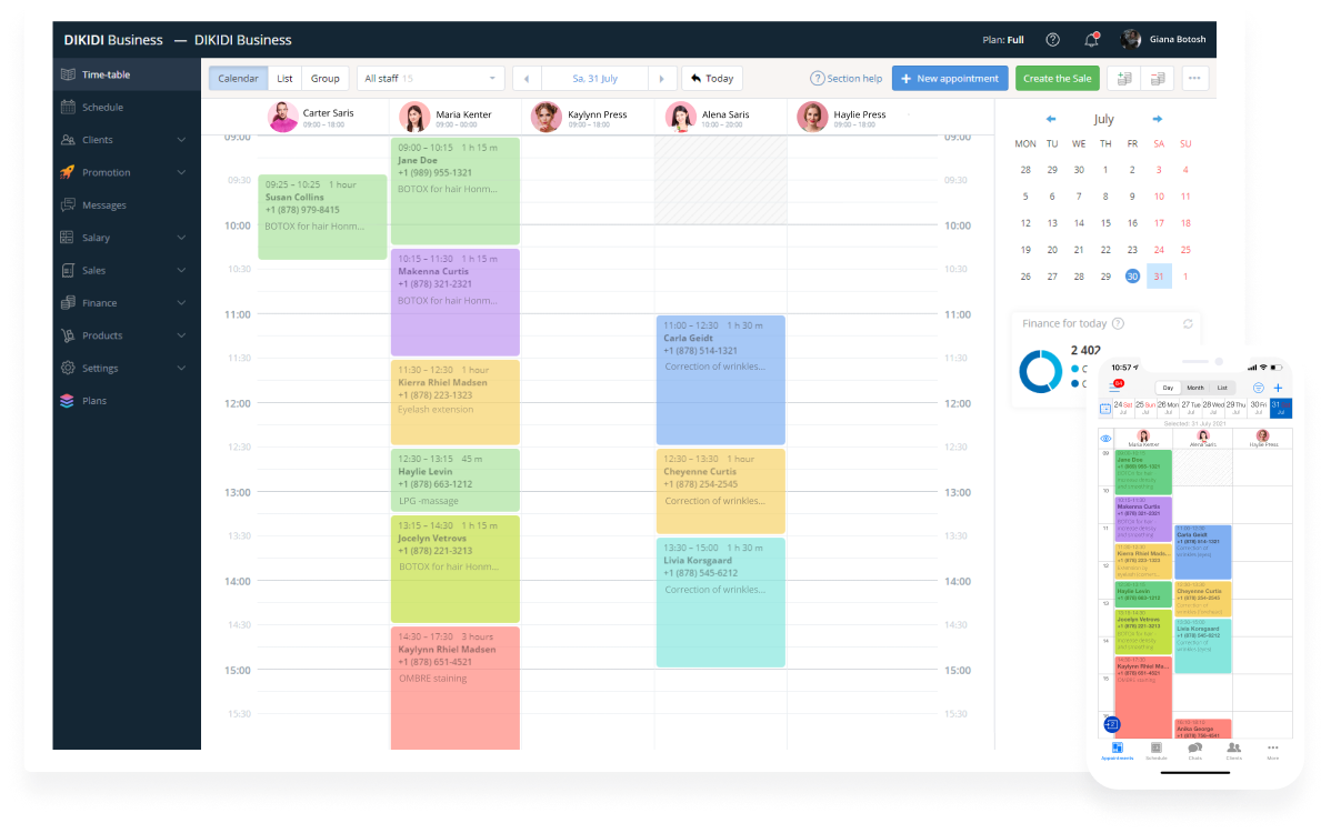 Key features of DIKIDI Business include: