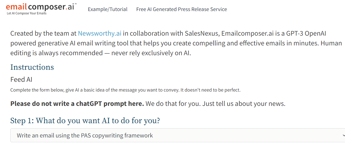 Created through collaboration between Newsworthy.ai and SalesNexus, Emailcomposer.ai is a cutting-edge email composition tool driven by GPT-3 technology that allows individuals to produce captivating and effective emails in a matter of minutes. Though this application simplifies the writing experience, it is crucial to maintain human oversight and not rely entirely on AI for your messaging. By blending technology with human creativity, the result is a superior level of communication. Ultimately, the synergy between AI capabilities and personal touch enhances the overall effectiveness of your emails.
