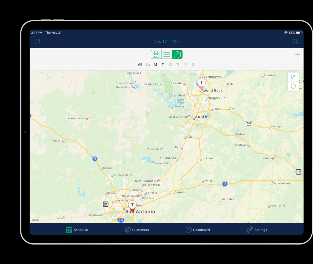 - Technician tracking: Use GPS check-ins to pinpoint employee locations and monitor job durations in real time.