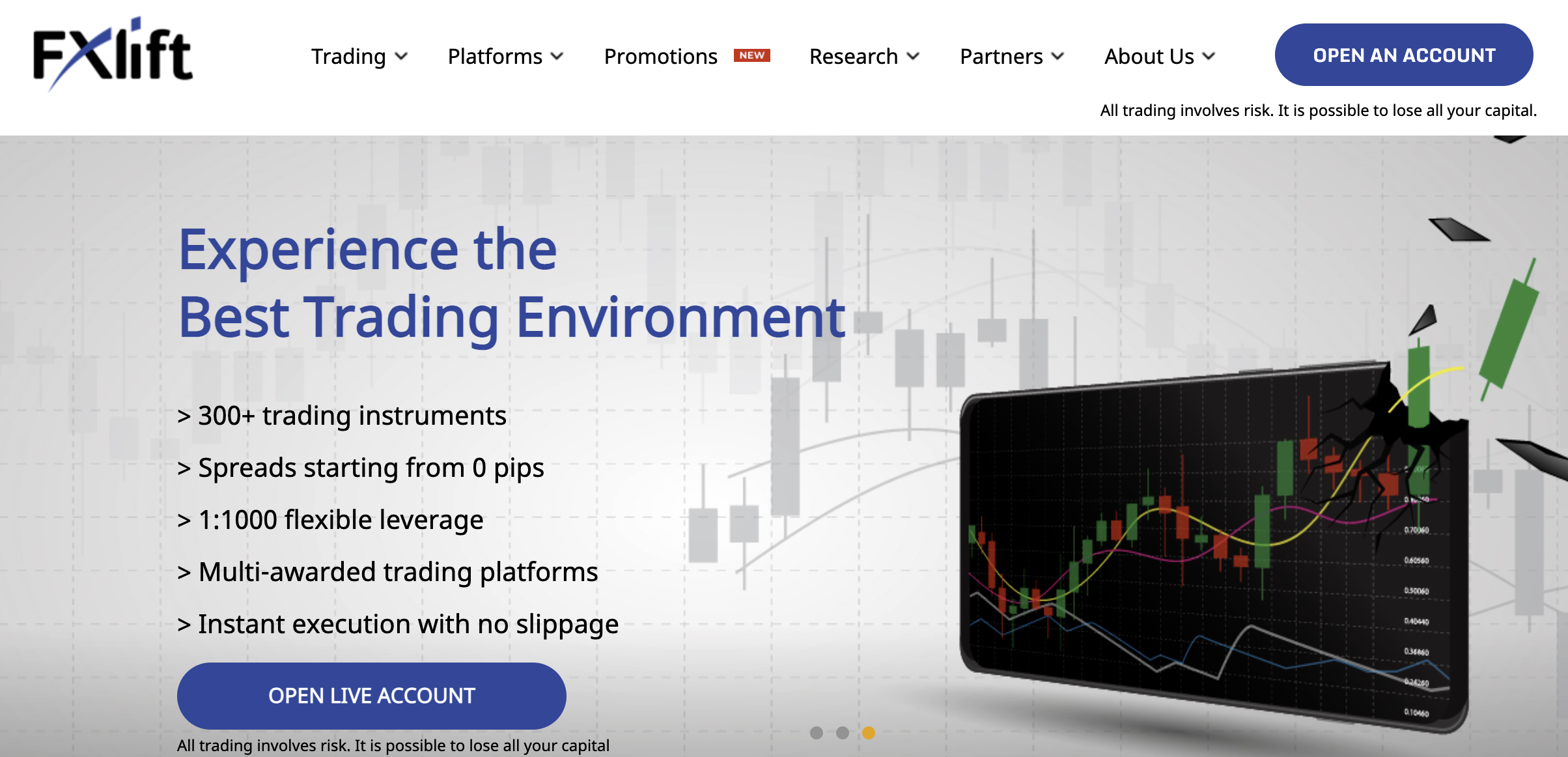 FXlift, a trade name of Notesco Limited based in Bermuda, is a global online trading broker that offers over 300 tradable products spanning six asset classes for both institutional and retail traders. This broker has established a successful presence worldwide, distinguishing itself through its commitment to transparency and reliability in its services. FXlift prioritizes delivering exceptional service standards to its clients, making it an ideal choice for those seeking a comprehensive online trading experience. With a focus on fostering trust, FXlift aims to be the go-to platform for traders around the globe.