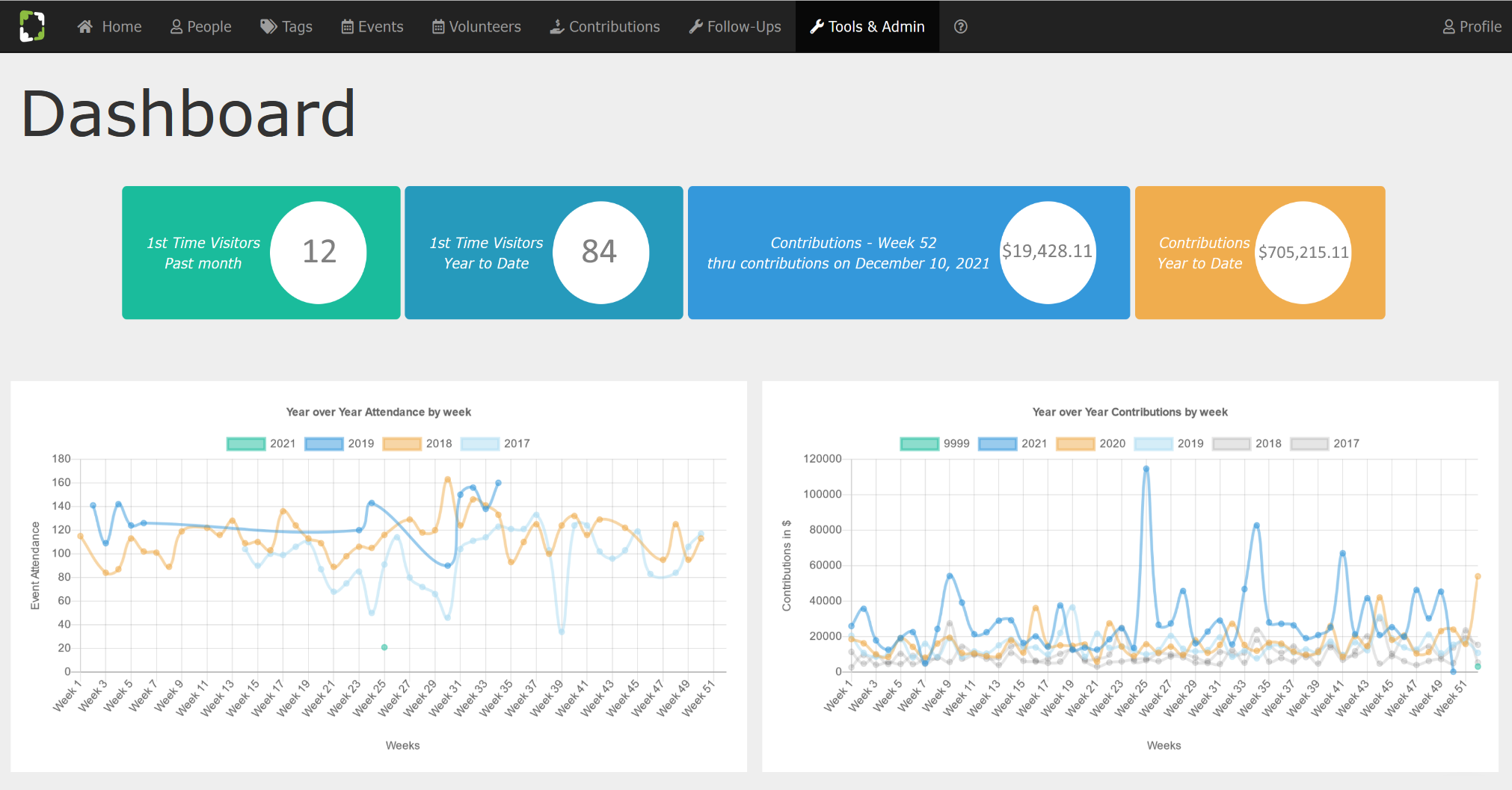 PositiveFaith Teams provides a fast moving, user-friendly interface that allows for all of the main functions of a data management software at an affordable price. It also has some dynamic features such as "groups and tags" and follow ups.