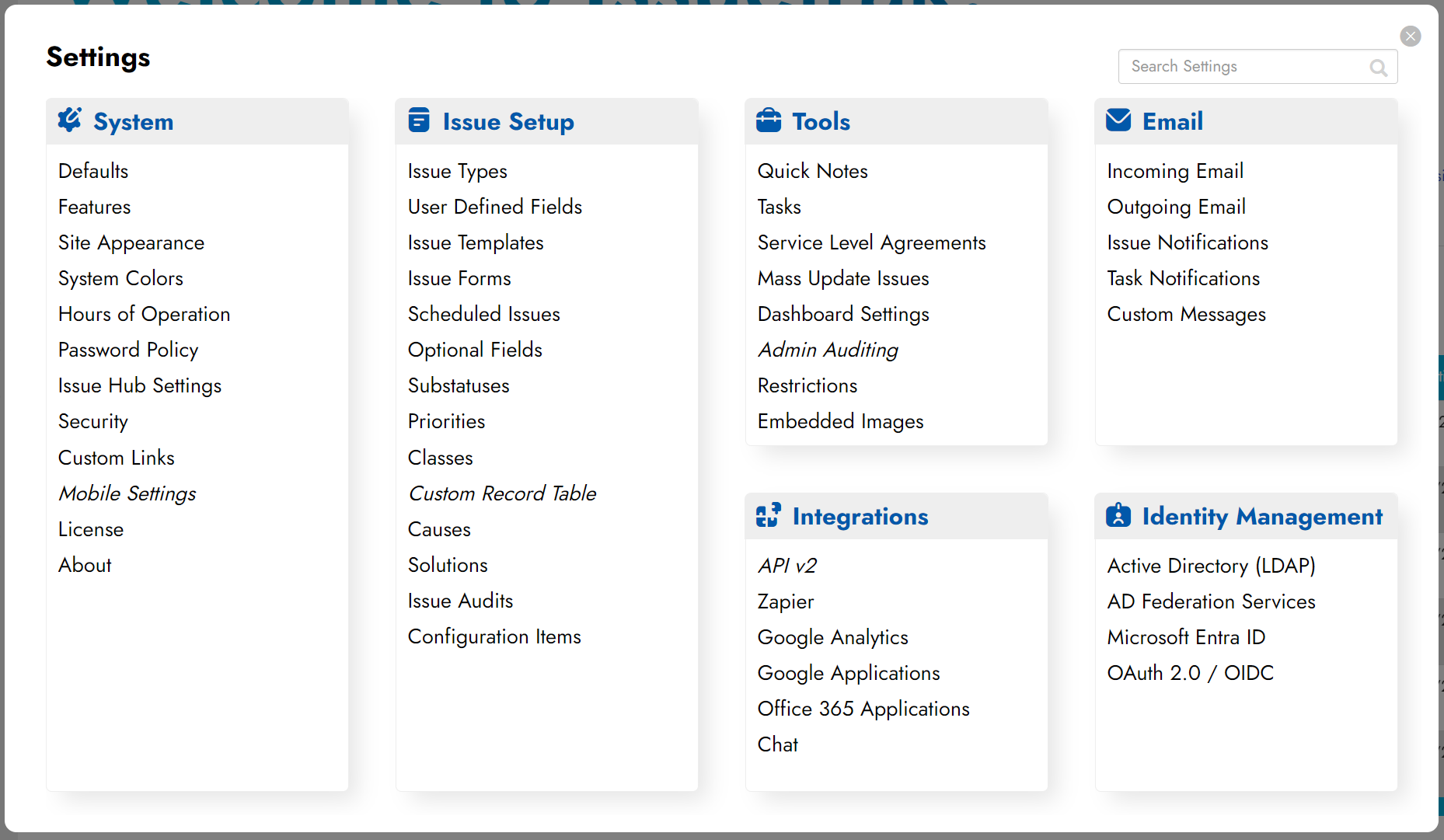 Issuetrak Categories and Features